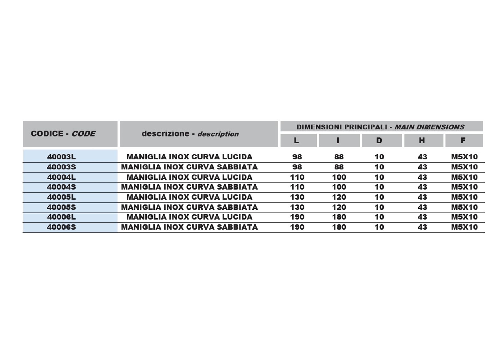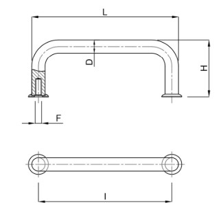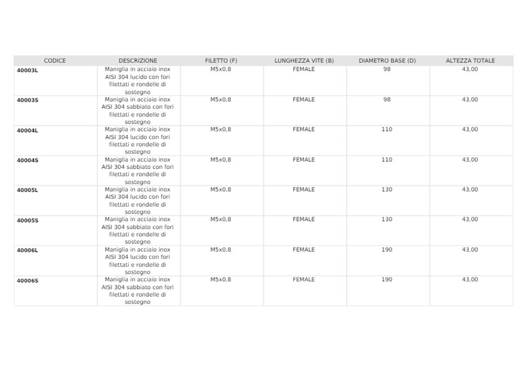 Maniglie in acciaio inox AISI 304 sabbiato con fori filettati e rondelle di sostegno. Design ergonomico. Ideale per prodotti alimentari, imballaggi, bevande, pasticceria, prodotti chimici, farmaceutici ecc…